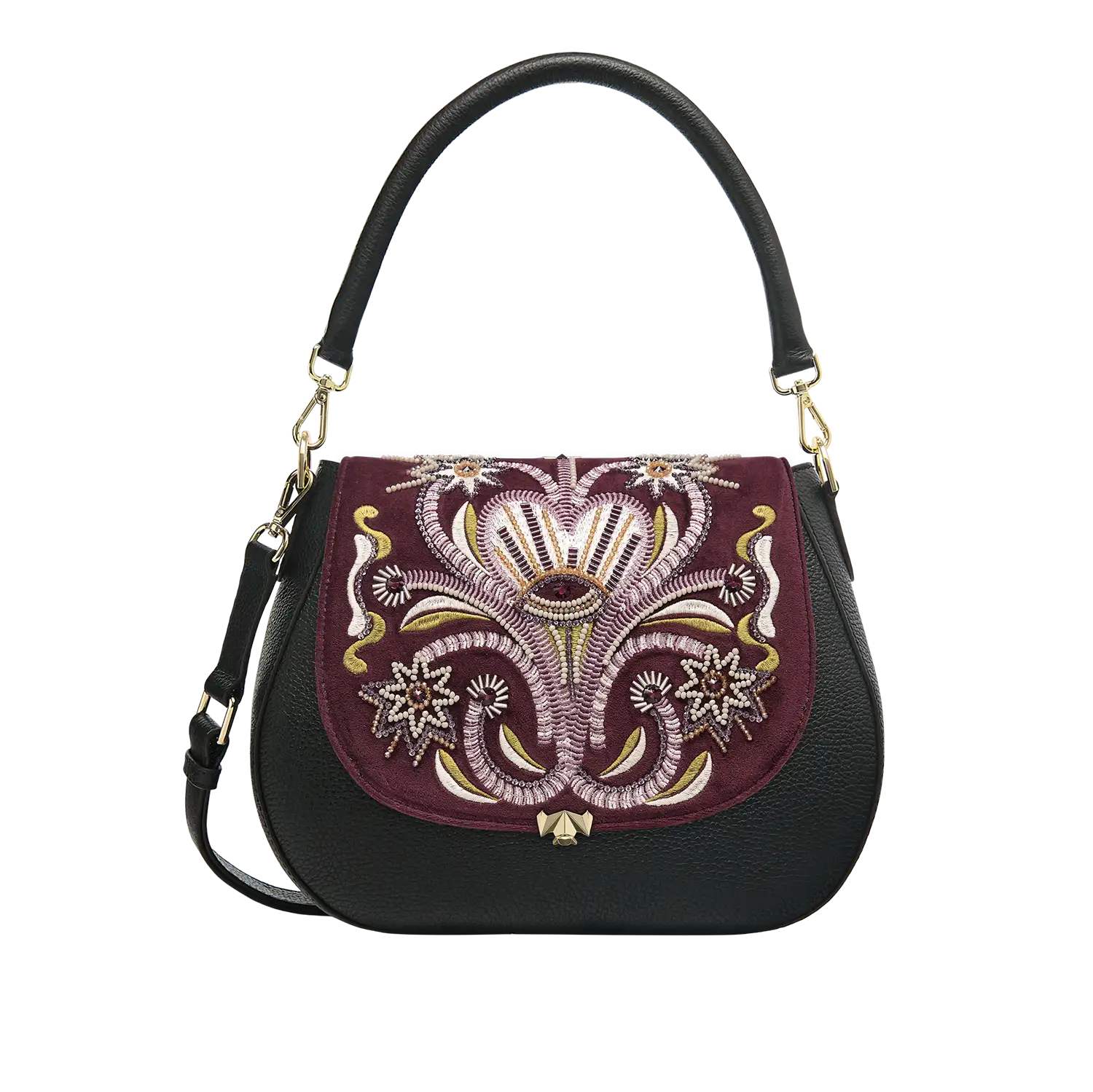 • Handgefertigt und aus hochwertigem Samtstoff. Die Klappe besteht aus aufwendigen Stickereien Metall-Garn und aufgestickten Glasperlen und Steinchen. Die Metallic Garne sind Made in Germany und Oeko-tex Standard 100 zertifiziert.