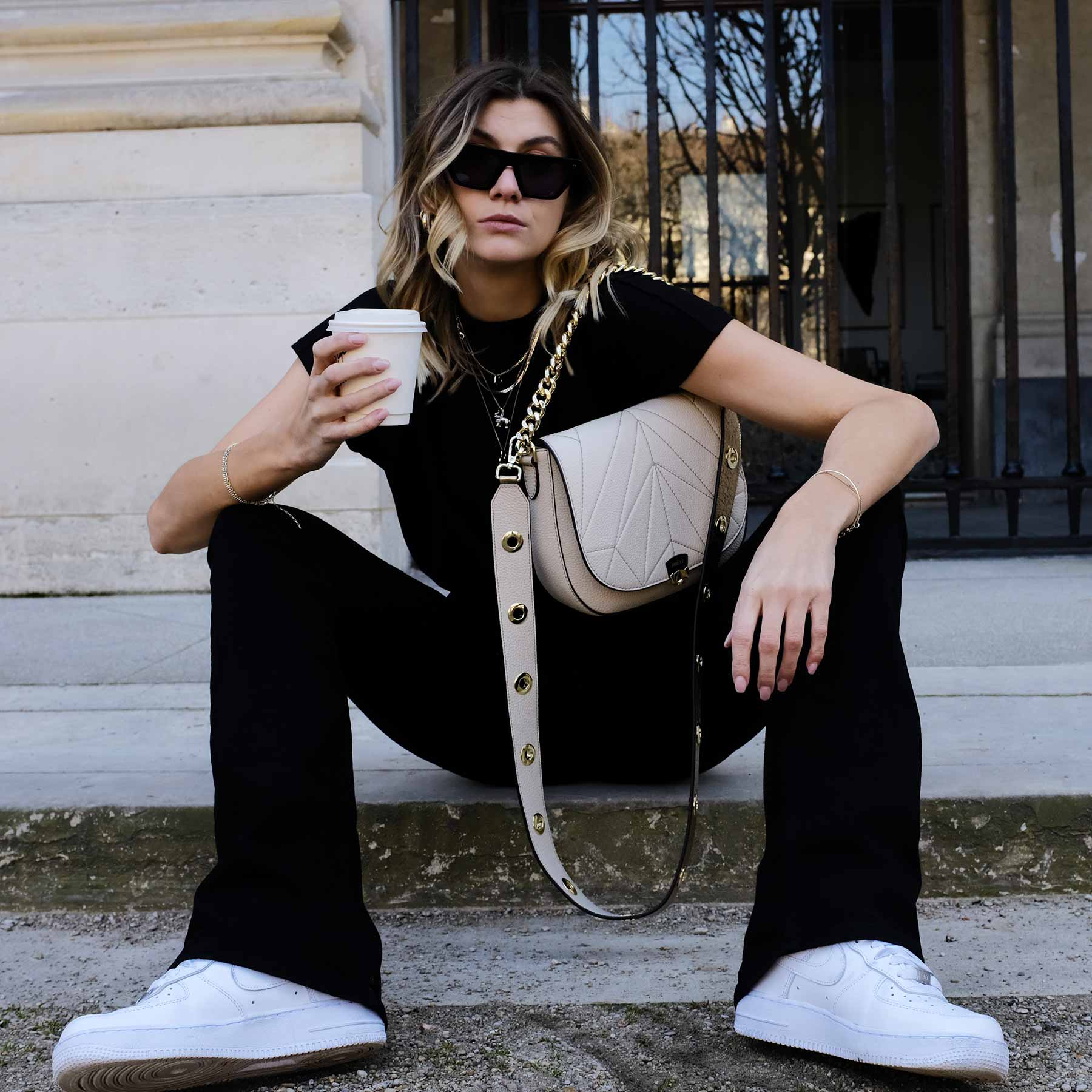 Kombiniere eine Square Bag oder eine Triple Miss immer mit einer Eckigen Wechselklappe.