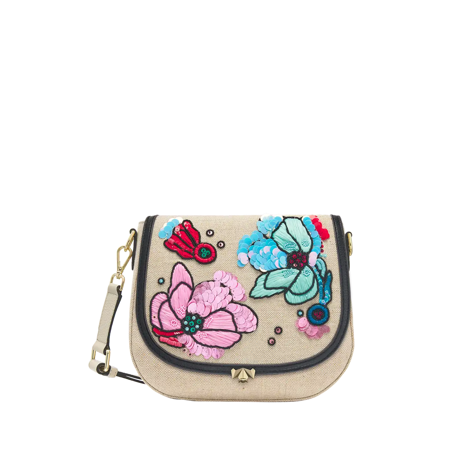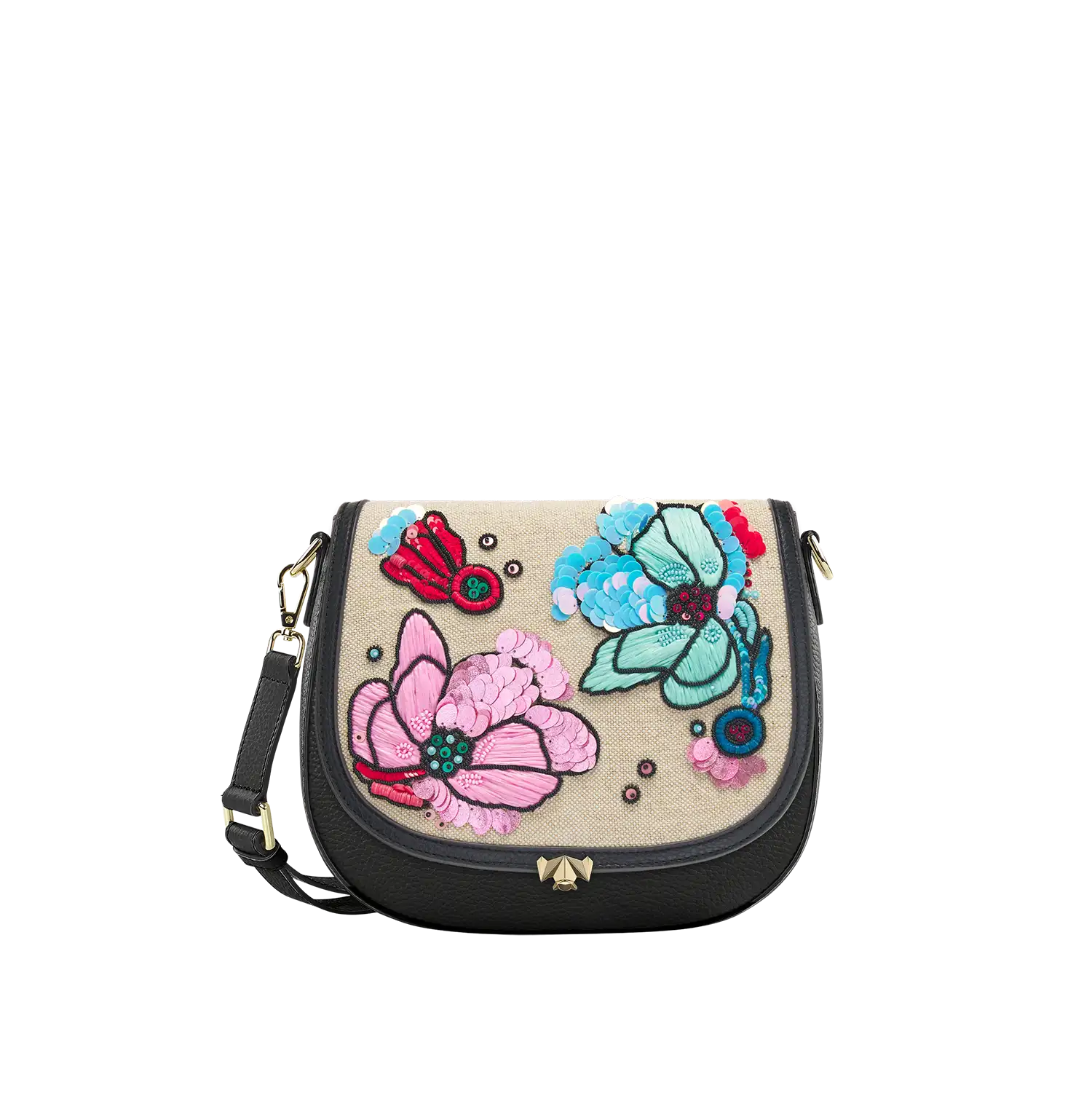 Aus hochwertigem Canvas-Stoff und handaufgenähten Blumen.