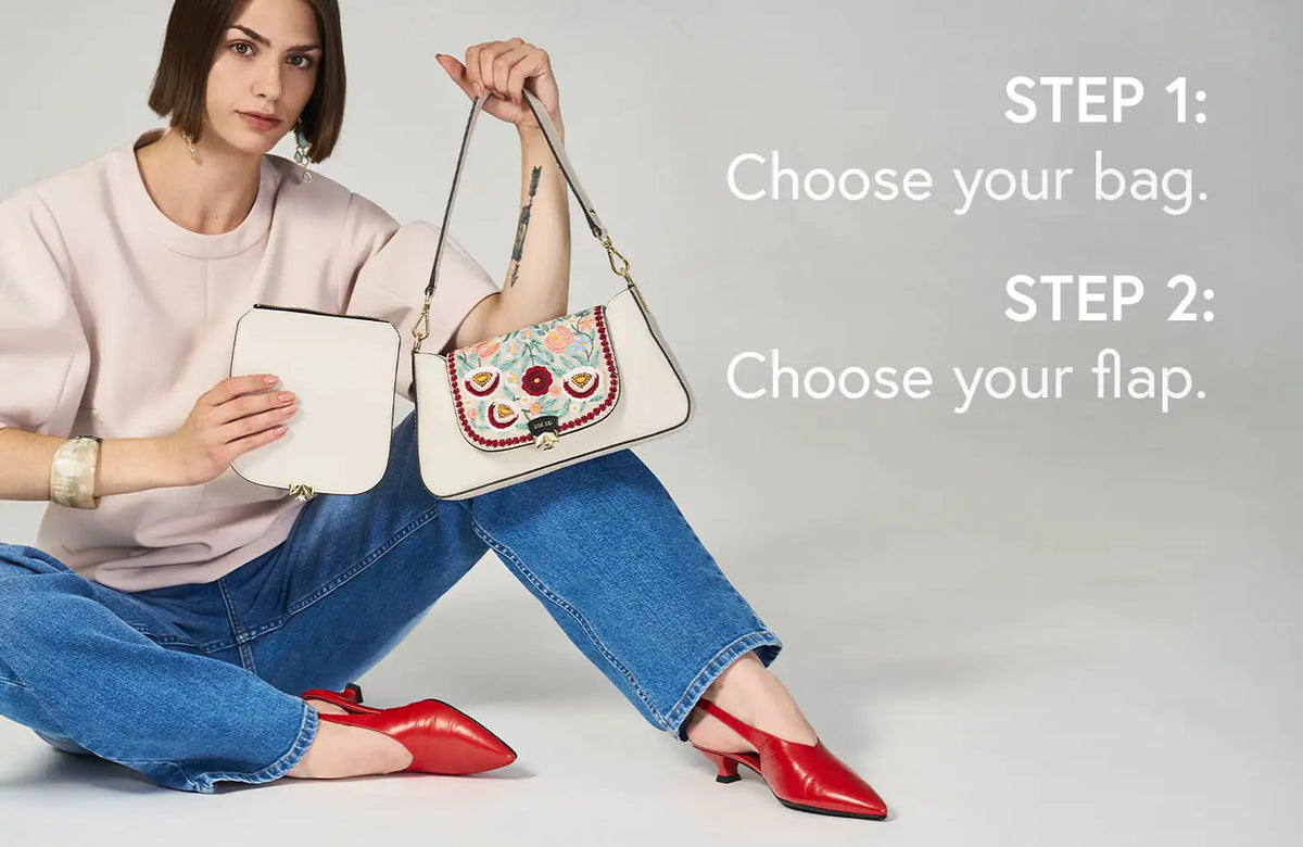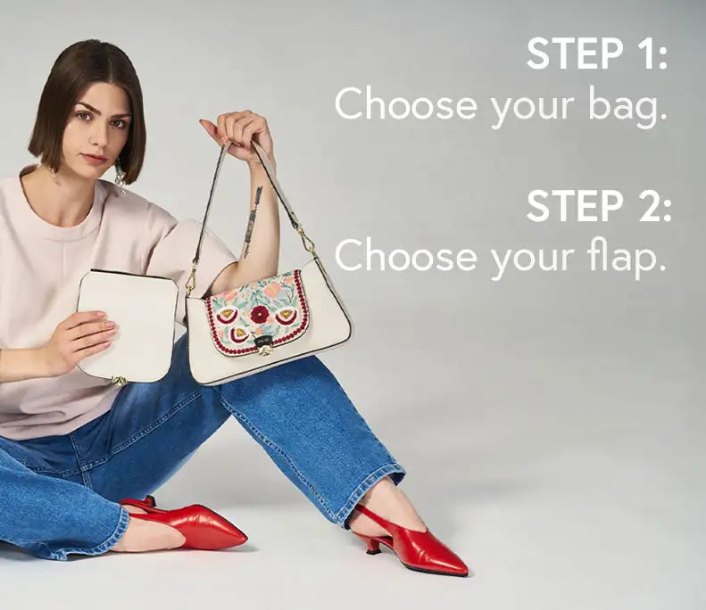 Wähle zuerst den Taschenkörper in deiner Wunschfarbe und danach die passende Mini Wechselklappe.
