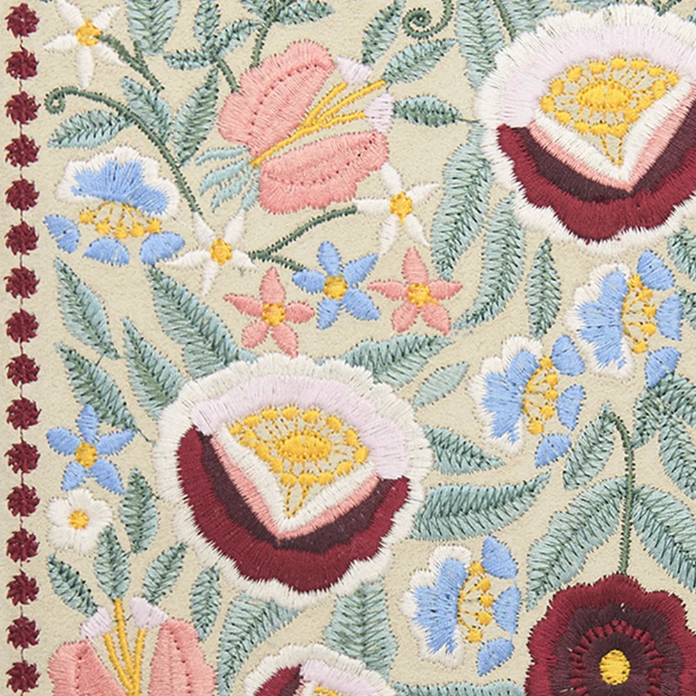 Da Veloursleder (Rauhleder) mit Stickereien empfindlicher ist als Glattleder - vor allem Regen, Fette und Flüssigkeiten können leicht in die samtartige Oberfläche eindringen und werden aufgesaugt - empfehlen wir zum Schutz den Friiz Protector nach Anleitung zu verwenden. Hier aber unbedingt aufpassen, dass man diesen nur tupfend aufträgt und nicht zu stark reibt, da sich sonst Fäden ziehen könnten.