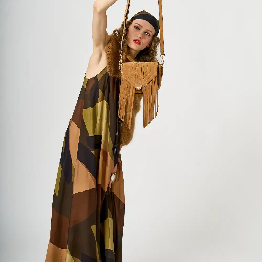 • Handgefertigt, aus hochwertigem Veloursleder aus Italien mit Fransen. Unser Premium Veloursleder zeichnet sich durch seine samtige Optik und Haptik und natürliche Optik aus.
